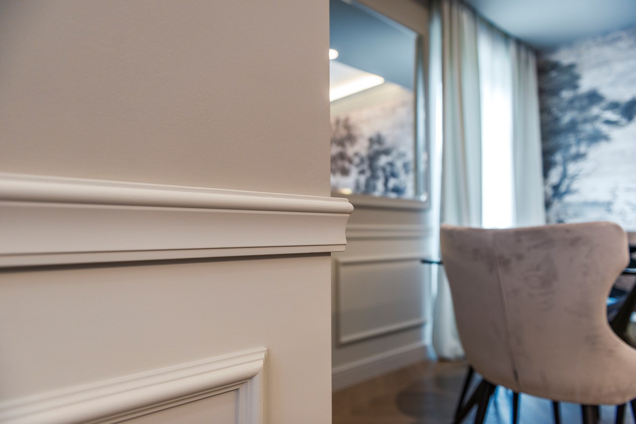 Gzymsy, listwy i dekoracje ścienne można łączyć z oświetleniem bezpośrednim lub pośrednim. Zaprojektowane dla przytulnej