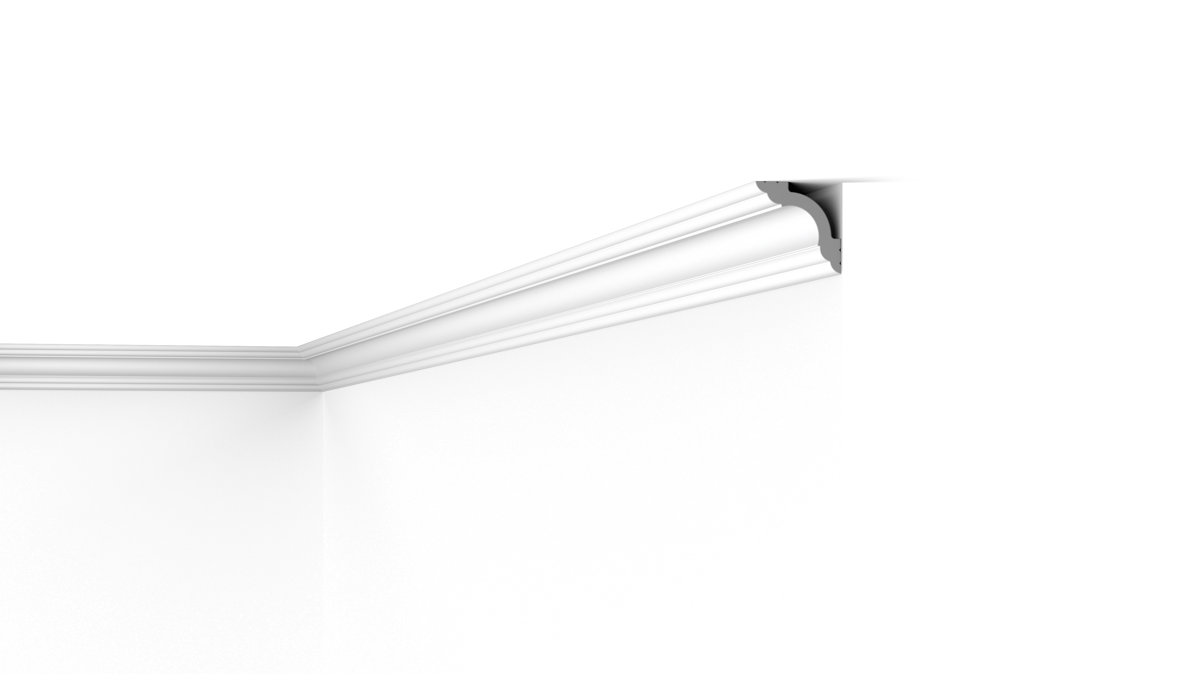La modanatura è già primerizzata e pronta per la verniciatura finale. Installare WT5 è semplice, è sufficiente incollare il rivestimento alla superficie che desideri. Sul retro della cornice per soffitto è predisposta una scanalatura per nascondere i cablaggi e le imperfezioni delle transizioni.