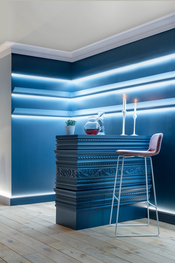 Gzymsy, listwy i dekoracje ścienne można łączyć z oświetleniem bezpośrednim lub pośrednim. Zaprojektowane dla przytulnej